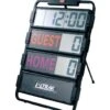 - Basketball game features all-weather hard-body backboard measures 34″ wide x 25.5″ high, with total size including base measuring 34″ wide x 45″ high x 38″ deep.