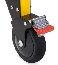 The LINE2design EMS Deluxe Heavy Duty Emergency Evacuation 2-Wheel Stair Chair has an extra sturdy 2” tubular frame in bright yellow for easy visibility. The Stair Chair comes with a heavy duty black all-impervious vinyl seat and backrest that is durable and easy to clean. A heavy duty, 2” cross body, quick release restraint straps provide extra safety to the patient during transport or while moving up or down stairs. Safety straps should be used at all times while a patient is in the chair.
