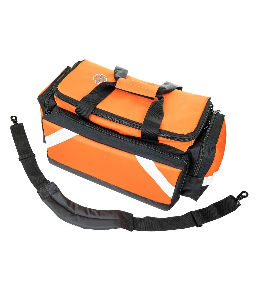 The LINE2Design Elite Trauma Bag Trauma First Aid Kit is was specifically designed for organization and the durability necessary for every first responder with zippered pockets on both sides of the bag, as well as both ends, and a zippered mesh pocket on top. It has internal dividers and a padded bottom that are fully removable for easy cleaning and adjustable storage. The LINE2design Elite EMS Trauma Bag is ruggedly structured and never loses its shape. It also comes complete with a convenient carrying handle as well as a fully adjustable shoulder strap for carrying it in any situation.