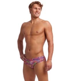 Add some flare to your training in the Funky Trunks Classic Briefs, featuring chlorine-resistant, quick drying C-infinity fabric for excellent performance.