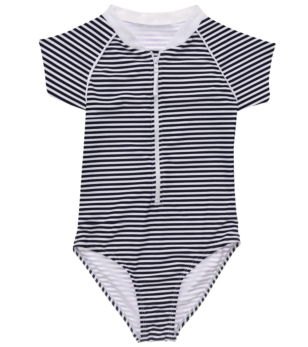 Looks cute and performs well in the water, the Snapper Rock Girls’ Nautical Stripe Short Sleeve One Piece Surf Suit is your kid’s favorite!