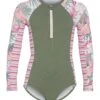 Go for a tropical vibe in the FINZ Girls’ Print Tri Back One Piece Swimsuit (Little Kid, Big Kid).