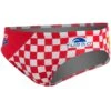 Feel supported during your swim session in the TYR Men’s Cascading TYR Print Racer Brief Swimsuit.