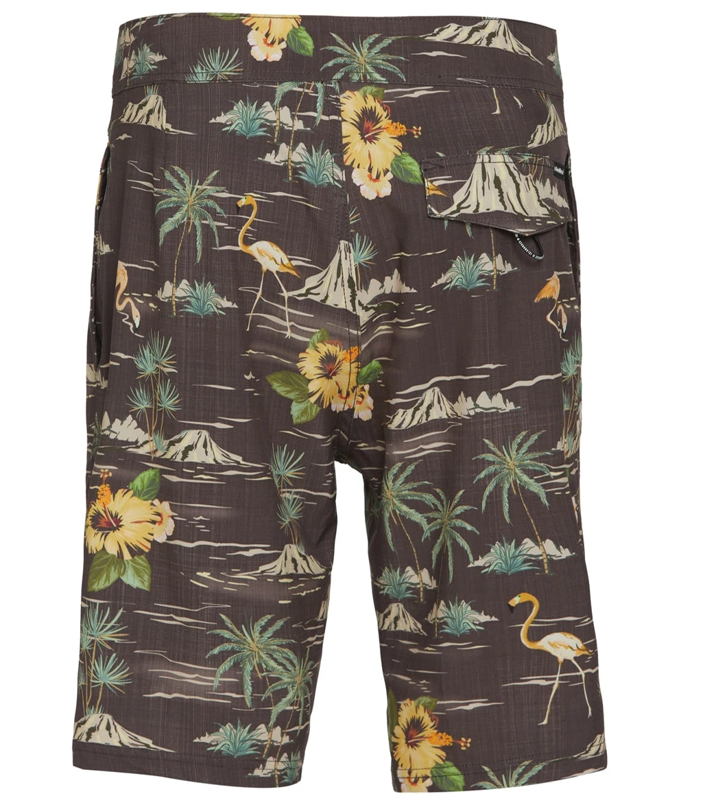 Rock a classic style and bask in the fun, beachy vibes of the Island Haze Men’s Ink Black Board Shorts, featuring vibrant print design and a secure front tie closure.