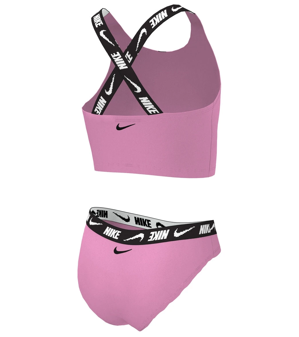 The Nike Girls Logo Tape Two Piece Midkini Set (Big Kid) is both stylish and durable for a variety of water activities.