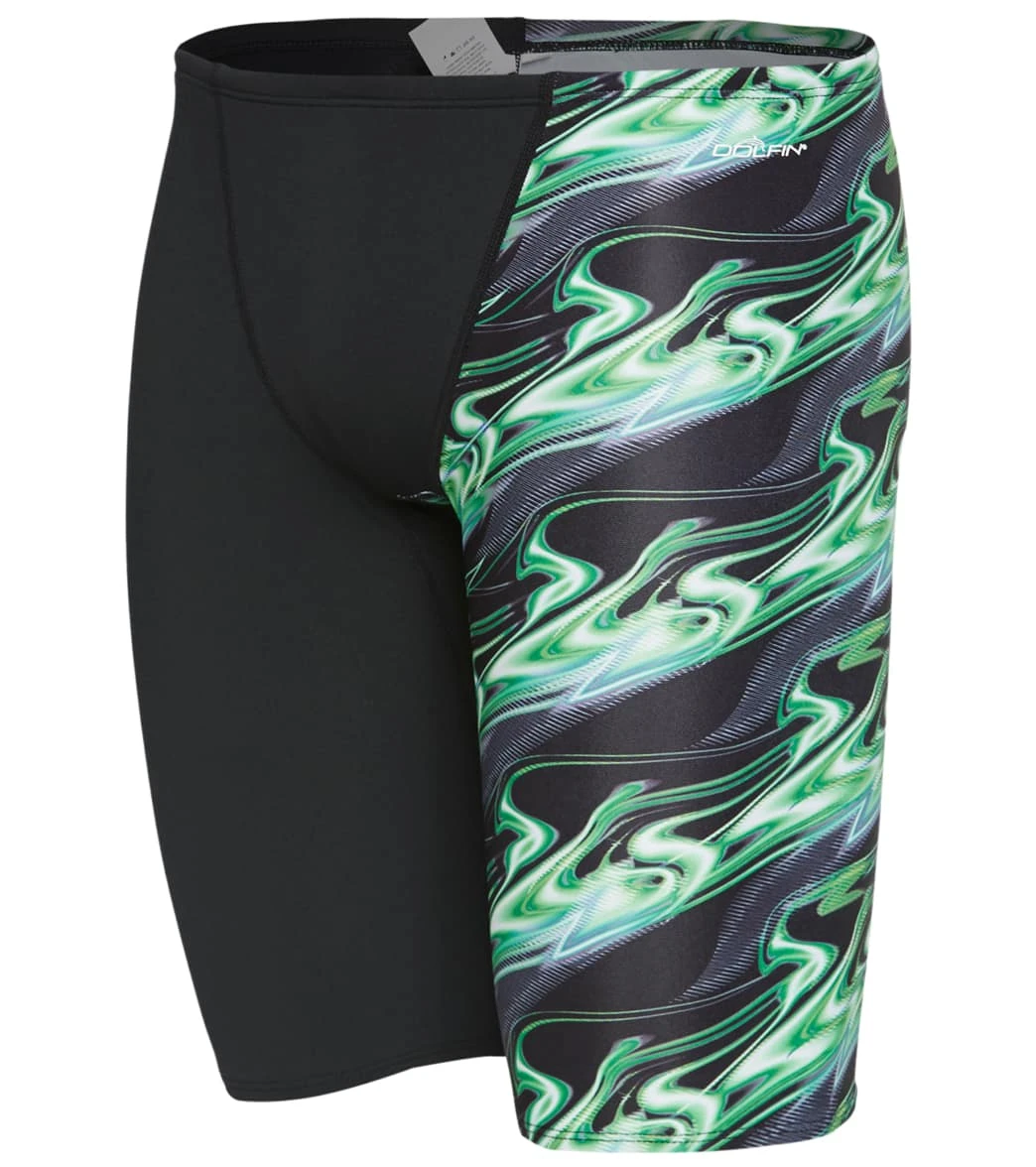 Stand out from the competition in the Dolfin Reliance Men’s Inferno Team Print Spliced Jammer Swimsuit.