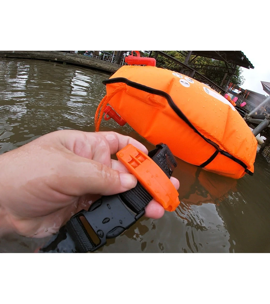 The Swim Secure Safety Whistle is a small but vital piece of kit that helps to draws attention to yourself or others in an emergency. It can be used when in the water or by anyone exploring the outdoors. It features an integrated clip attachment on the back which can slide onto clothing, bags or over the double layer in your tow float waist belt when out for a swim. When blown, the whistle produces a dual toned, 108 dB sound.