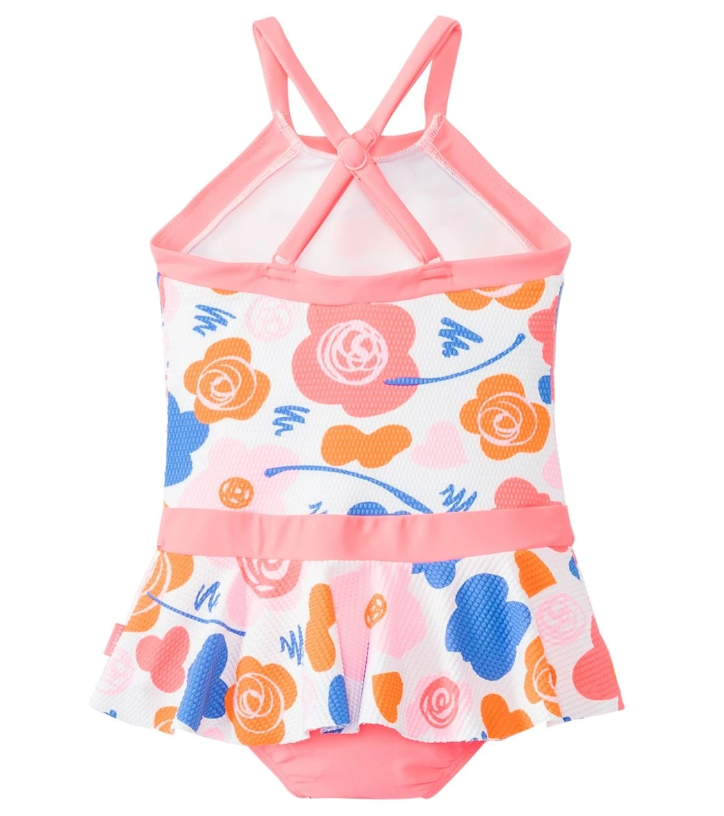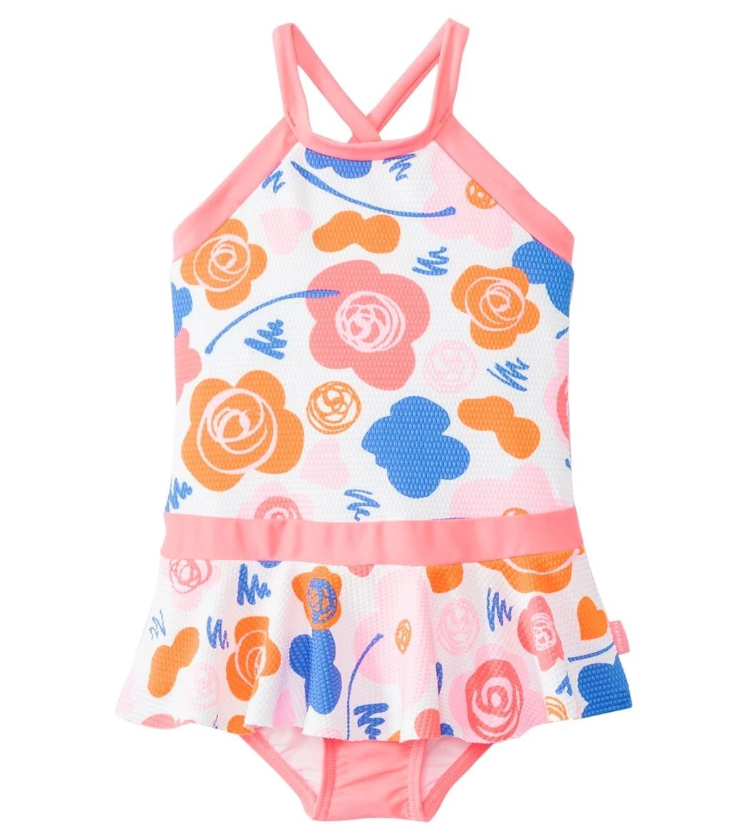 She’ll be splashing in style when she sports the Seafolly Girls’ Vintage Pop Skirted Tank One Piece Swimsuit. This lovely swimsuit offers a cute fit and comfortable coverage that is ideal for little swimmers.