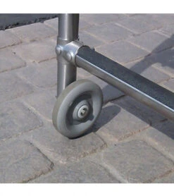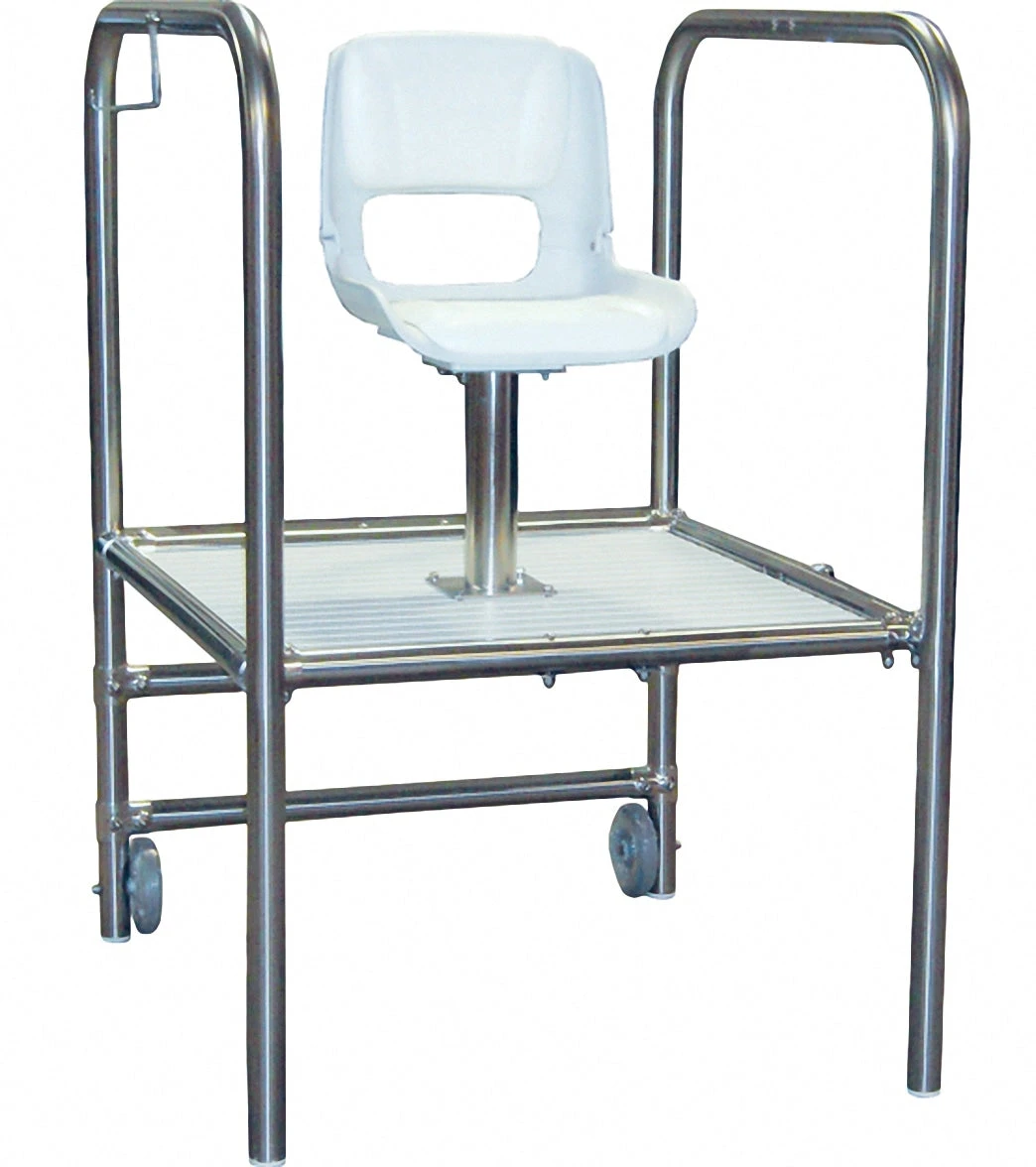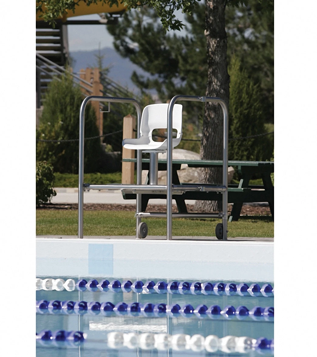 - Moveable lifeguard chairs include wheels for easy transport.