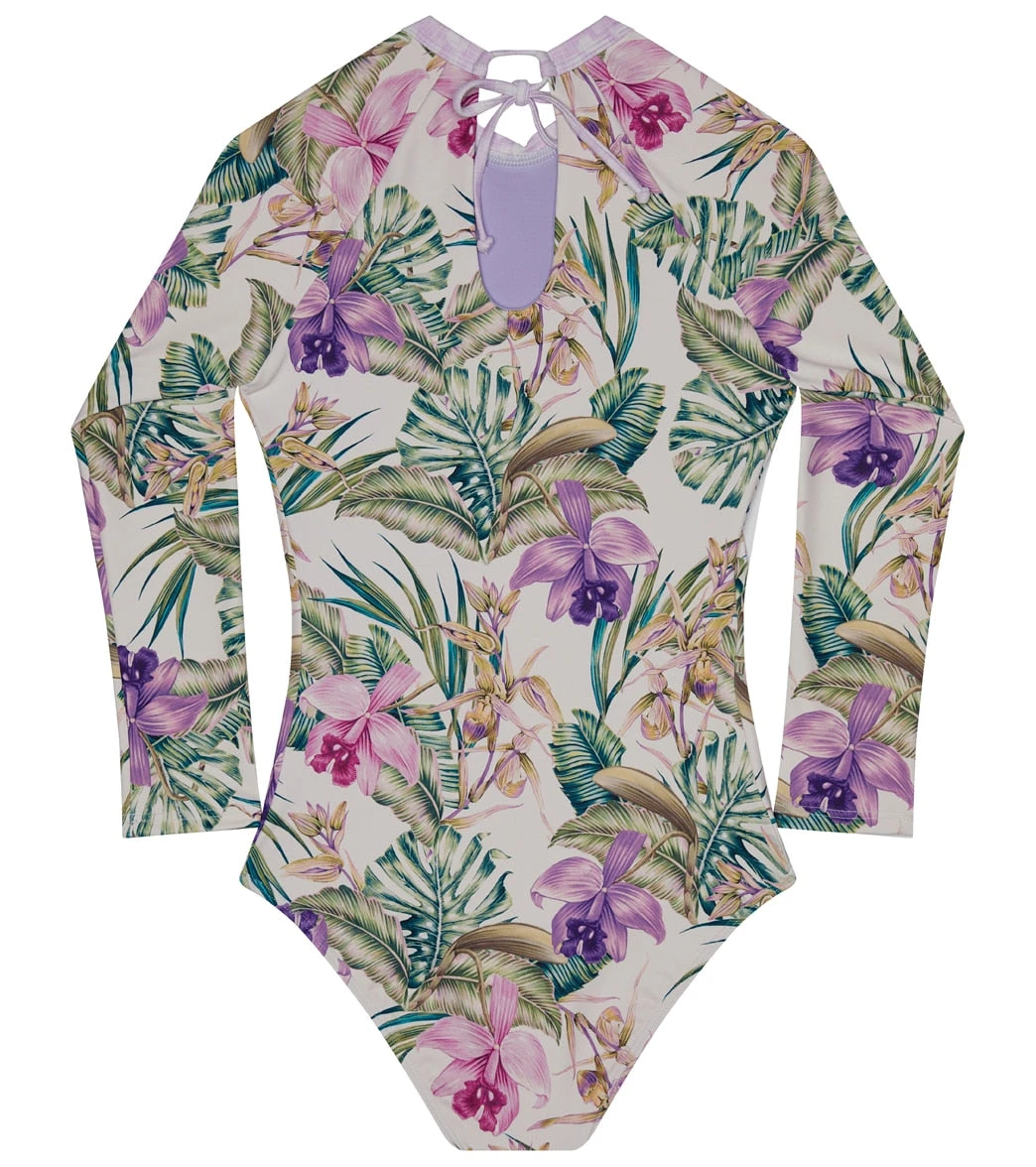 Feel stylish, comfortable, and sporty in the Splendid Girls’ Panama Garden Long Sleeve One Piece Swimsuit (Big Kid), featuring a design that’s perfect for laying under the sun or jumping in the pool.