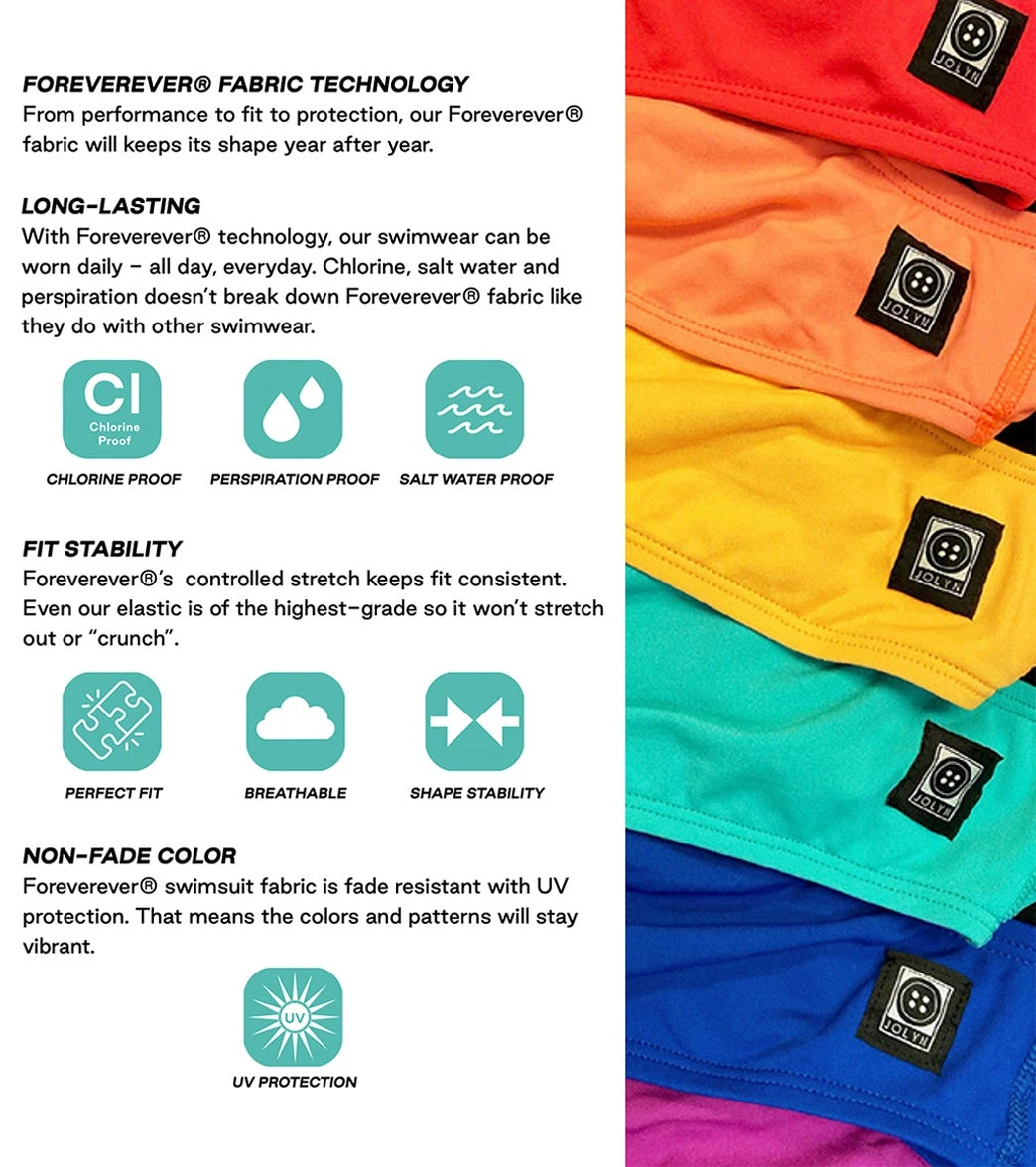 - Longlasting ForevereverÂź fabric technology is made to withstand chlorine, saltwater, and perspiration, meaning you can wear it every day!